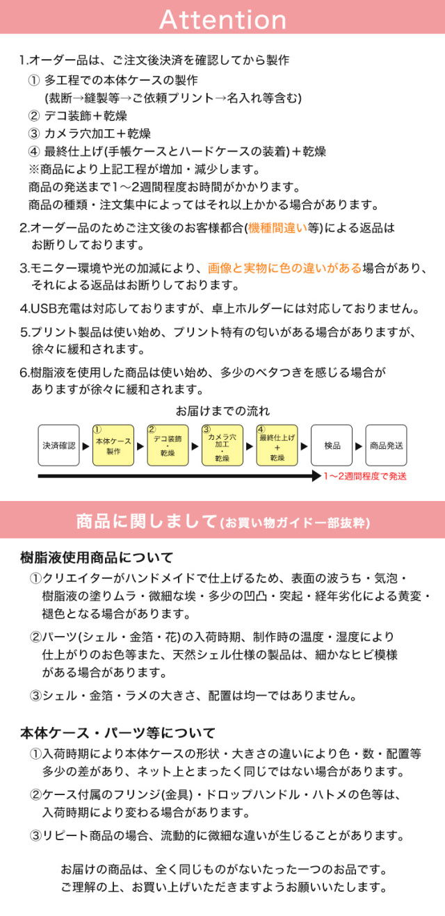 ※細心の注意を払っておりますが、手作り商品となりますので、ケースの臭いや細かい個所が気になられる方、神経質な方はご遠慮願います。