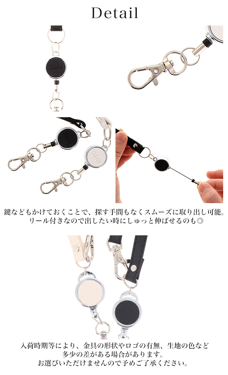 スマホケース・鍵・パスケースに装着できるリール付きのストラップです。