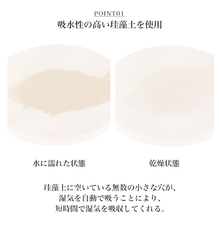 ■珪藻土は性質上斑点、多少のキズ・欠けなどが出る場合がありますが、吸水力に影響はありません。