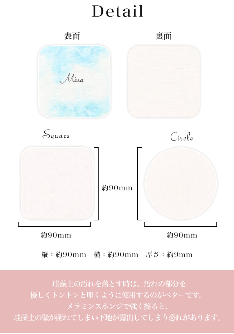 【名入れ】珪藻土コースター コースター おしゃれ オシャレ かわいい 丸 四角 手作り インテリア雑貨 ギフト プレゼント 2枚組 名入れ 名入り 可能
