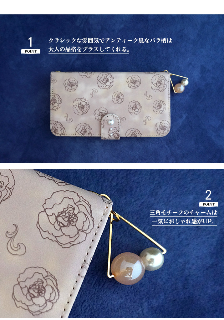 ケース カバー ジャケット iPhone7ケース iPhoneケース スマホケース スマホカバー スマートフォンケース 手帳型スマホケース 手帳型ケース オリジナル デコレーション デザイン かわいい 可愛い おしゃれ オシャレ 個性的 携帯ケース プレゼント 誕生日 贈りもの 彼女 彼氏 カードポケット付 人気 ディズニー モバイル 花柄 フラワー 花 バラ 薔薇 トライアングル 三角モチーフ パール クラシック アンティーク 淡い パステル