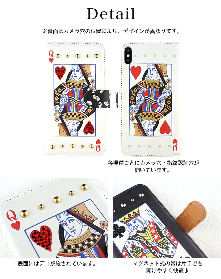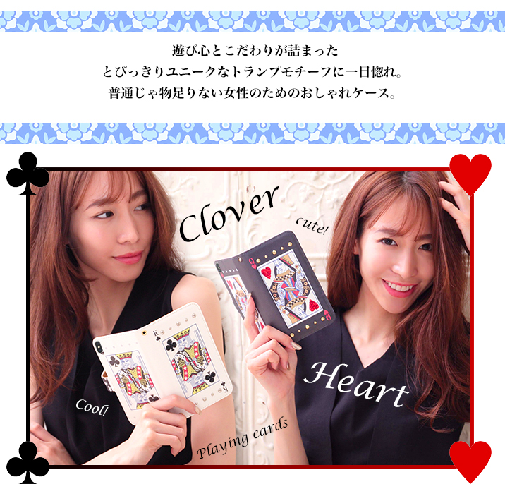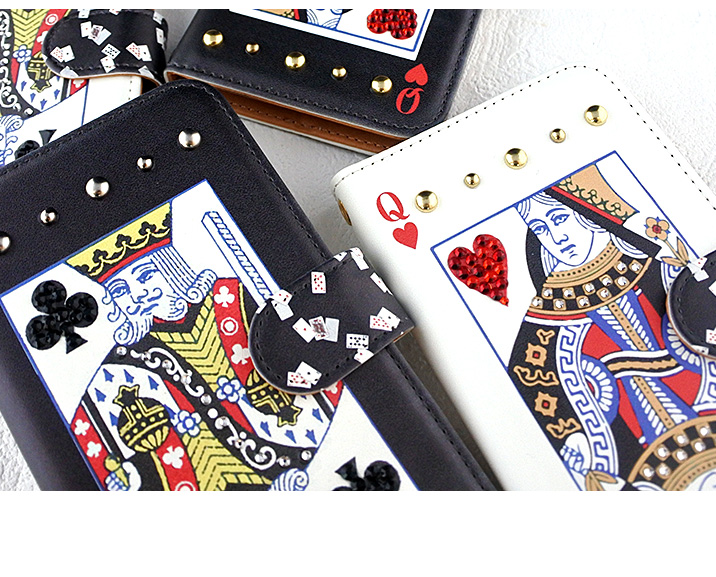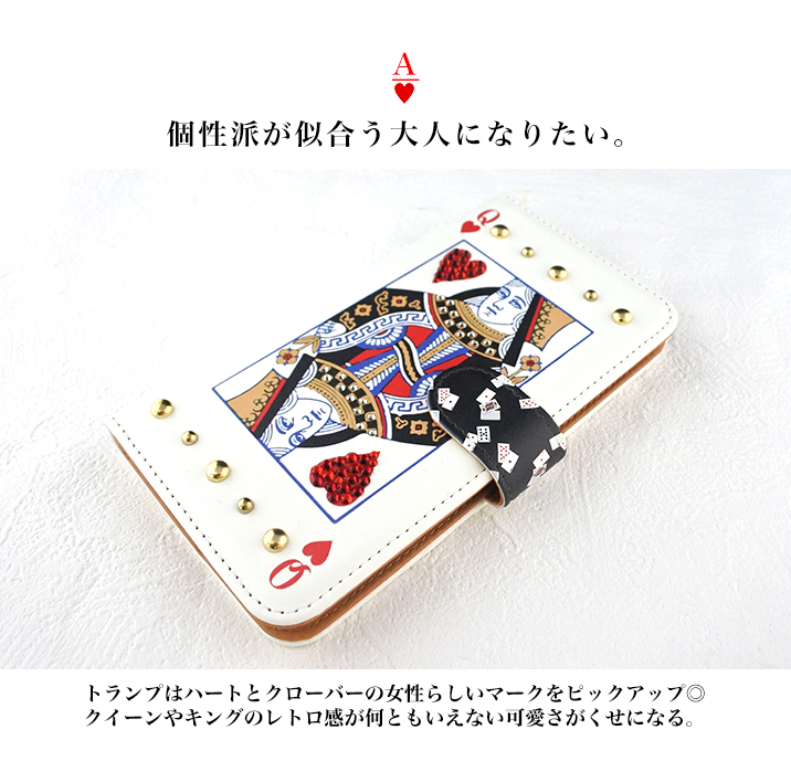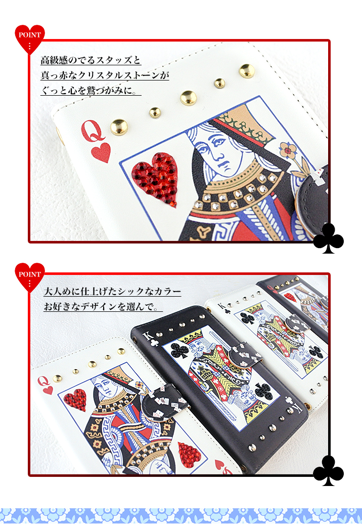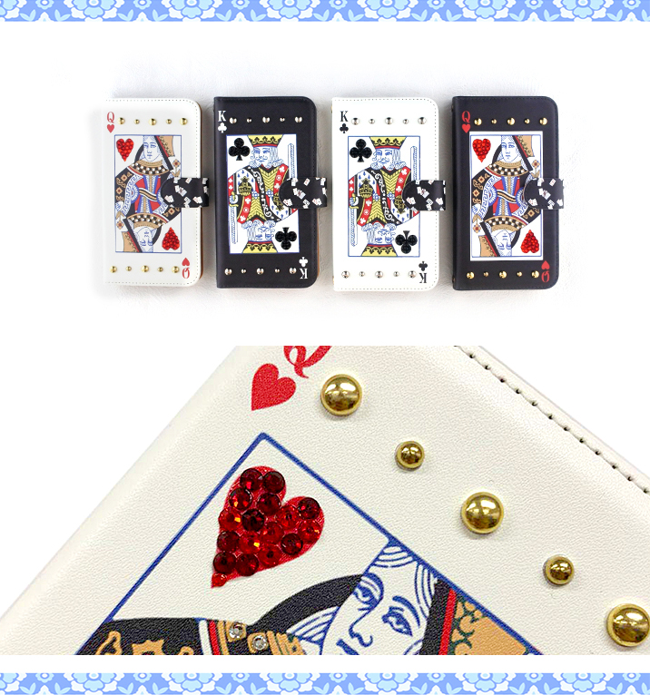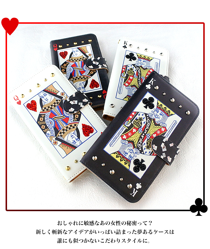 ケース カバー ジャケット iPhone7ケース iPhoneケース スマホケース スマホカバー スマートフォンケース 手帳型スマホケース 手帳型ケース オリジナル デコレーション デザイン かわいい 可愛い おしゃれ オシャレ 個性的 携帯ケース プレゼント 誕生日 贈りもの 彼女 彼氏 カードポケット付 人気 ディズニー モバイル トランプ トランプカード ハート クローバー クイーン キング スタッズ