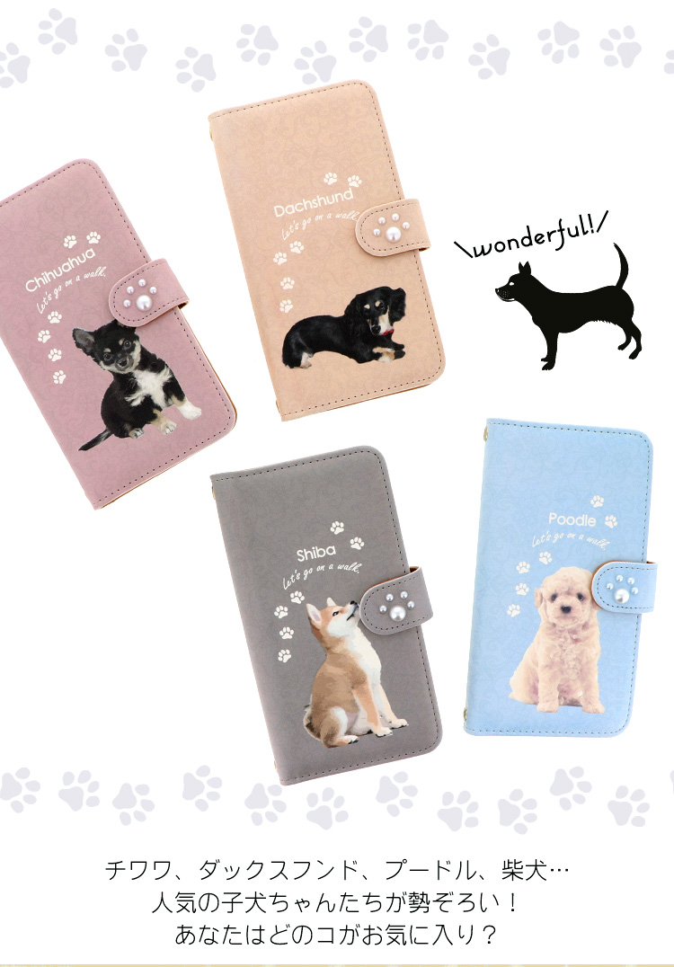 ケース カバー ジャケット iPhone7ケース iPhoneケース スマホケース スマホカバー スマートフォンケース 手帳型スマホケース 手帳型ケース オリジナル デコレーション デザイン かわいい 可愛い おしゃれ オシャレ 個性的 携帯ケース プレゼント 誕生日 贈りもの 彼女 彼氏 カードポケット付 人気 ディズニー モバイル パール デコ アニマル パステル わんちゃん 犬 ダックスフント 柴犬 チワワ プードル