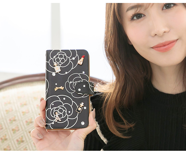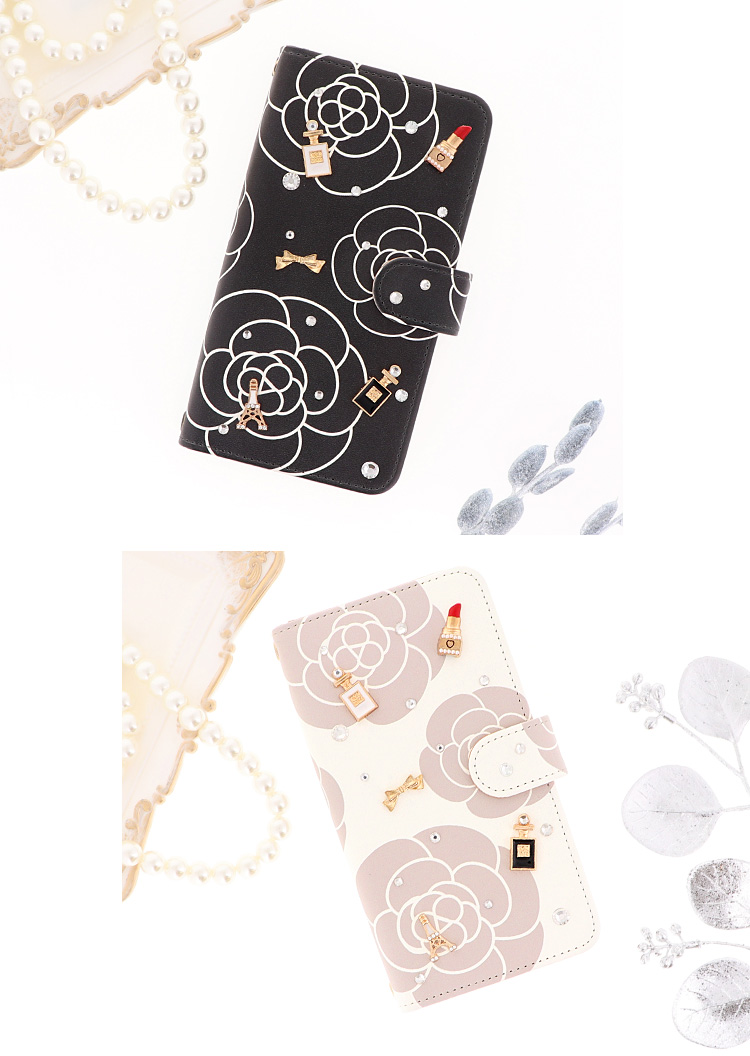 ケース カバー ジャケット iPhone7ケース iPhoneケース スマホケース スマホカバー スマートフォンケース 手帳型スマホケース 手帳型ケース オリジナル デコレーション デザイン かわいい 可愛い おしゃれ オシャレ 個性的 携帯ケース プレゼント 誕生日 贈りもの 彼女 彼氏 カードポケット付 人気 ディズニー モバイル 花 花柄 フラワー カメリア コスメ コスメデコ リボンデコ ホワイト ピンク ブラック 白 桃色 黒
