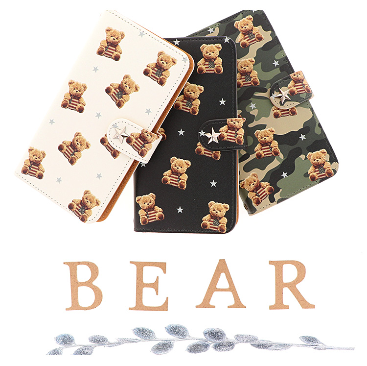 ケース カバー ジャケット iPhone7ケース iPhoneケース スマホケース スマホカバー スマートフォンケース 手帳型スマホケース 手帳型ケース オリジナル デコレーション デザイン かわいい 可愛い おしゃれ オシャレ 個性的 携帯ケース プレゼント 誕生日 贈りもの 彼女 彼氏 カードポケット付 人気 ディズニー モバイル animal アニマル クマ くま テディベア 星 スター 迷彩 ホワイト ブラック グリーン 白 黒