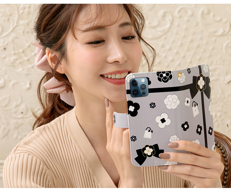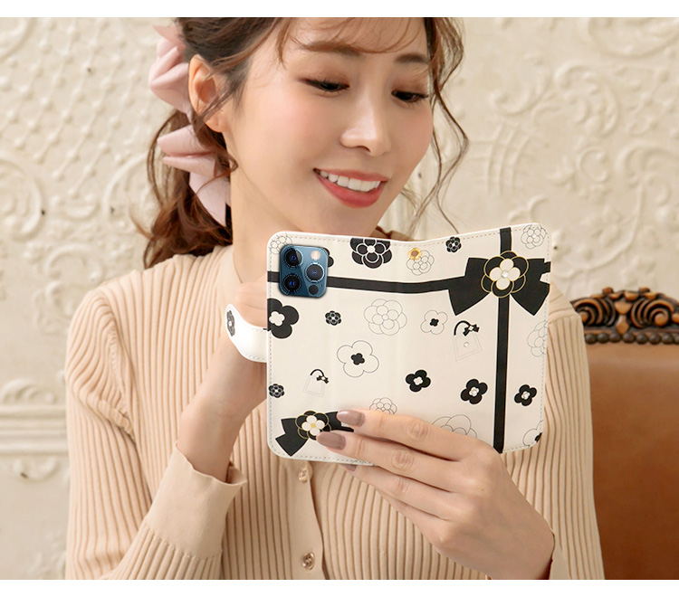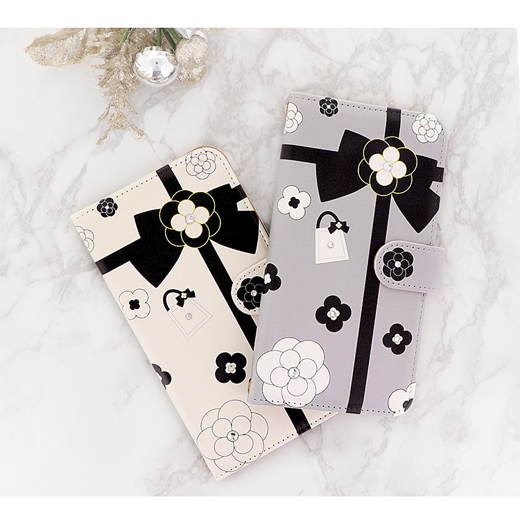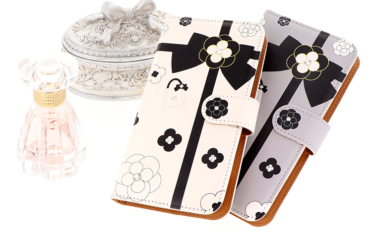 ケース カバー ジャケット iPhone7ケース iPhoneケース スマホケース スマホカバー スマートフォンケース 手帳型スマホケース 手帳型ケース オリジナル デコレーション デザイン かわいい 可愛い おしゃれ オシャレ 個性的 携帯ケース プレゼント 誕生日 贈りもの 彼女 彼氏 カードポケット付 人気 ディズニー モバイル 花柄 花 フラワー カメリア リボン りぼん ブラック ホワイト グレー 黒 白 灰色