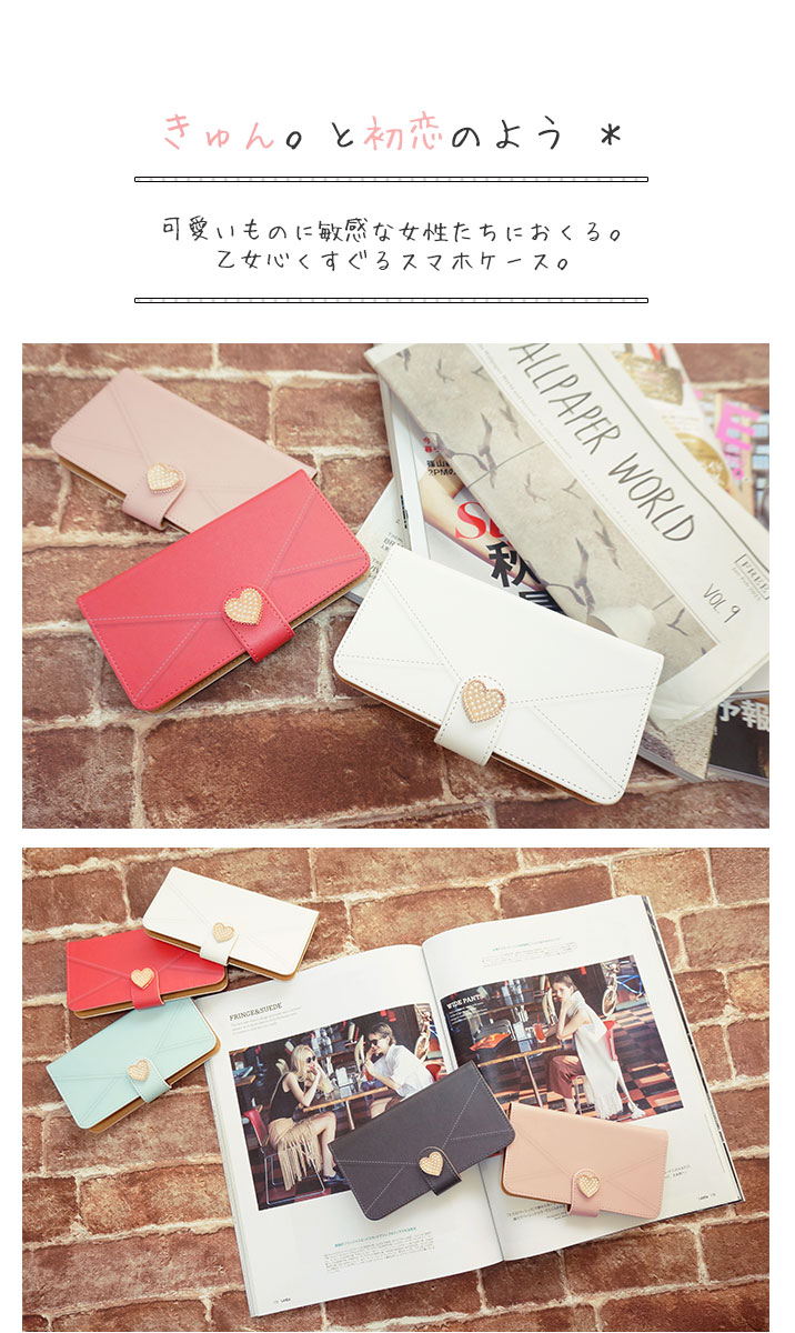 ケース カバー ジャケット iPhone7ケース iPhoneケース スマホケース スマホカバー スマートフォンケース 手帳型スマホケース 手帳型ケース オリジナル デコレーション デザイン かわいい 可愛い おしゃれ オシャレ 個性的 携帯ケース プレゼント 誕生日 贈りもの 彼女 彼氏 カードポケット付 人気 ディズニー モバイル ラブレター 手紙 レター ハート パール シンプル 淡い パステル