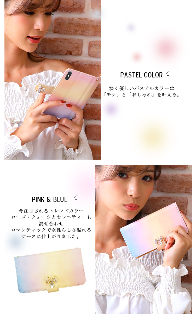 ケース カバー ジャケット iPhone7ケース iPhoneケース スマホケース スマホカバー スマートフォンケース 手帳型スマホケース 手帳型ケース オリジナル デコレーション デザイン かわいい 可愛い おしゃれ オシャレ 個性的 携帯ケース プレゼント 誕生日 贈りもの 彼女 彼氏 カードポケット付 人気 ディズニー モバイル 大人かわいい シャンティ おフェロ パステル グラデーション ミルキー ふんわり ふわり ローズクォーツ セレニティー