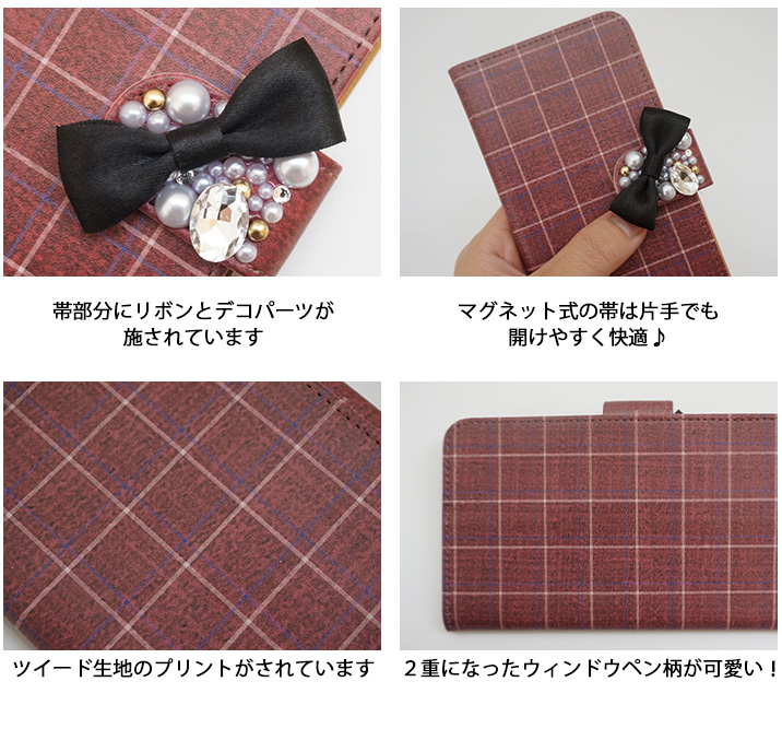 ケース カバー ジャケット iPhone7ケース iPhoneケース スマホケース スマホカバー スマートフォンケース 手帳型スマホケース 手帳型ケース オリジナル デコレーション デザイン かわいい 可愛い おしゃれ オシャレ 個性的 携帯ケース プレゼント 誕生日 贈りもの 彼女 彼氏 カードポケット付 人気 ディズニー モバイル ツイード生地 ツイード りぼん リボン クリスタル チェック柄 チェック ウィンドウペン ウィンドーペン