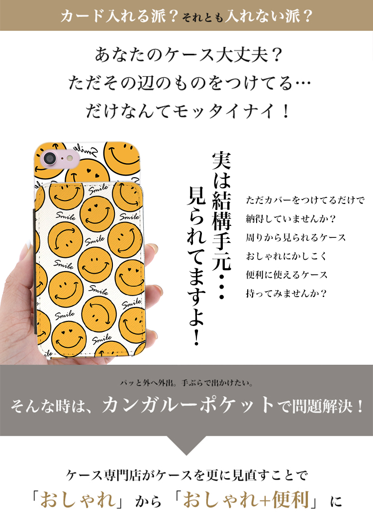 ケース カバー ジャケット iPhone7ケース iPhoneケース スマホケース スマホカバー スマートフォンケース オリジナル デコレーション デザイン かわいい 可愛い おしゃれ オシャレ 個性的 携帯ケース プレゼント 誕生日 贈りもの 彼女 彼氏 カードポケット付 人気 ディズニー カンガルーポケット カンガルー ポケット カード入れ スマイル ニコ ニコちゃん