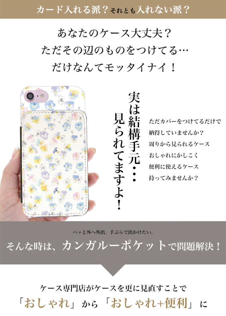 ケース カバー ジャケット iPhone7ケース iPhoneケース スマホケース スマホカバー スマートフォンケース オリジナル デコレーション デザイン かわいい 可愛い おしゃれ オシャレ 個性的 携帯ケース プレゼント 誕生日 贈りもの 彼女 彼氏 カードポケット付 人気 ディズニー カンガルーポケット カンガルー ポケット カード入れ スマホスタンド ふんわり 中内和香 waka 水彩 テキスタイル パンジー