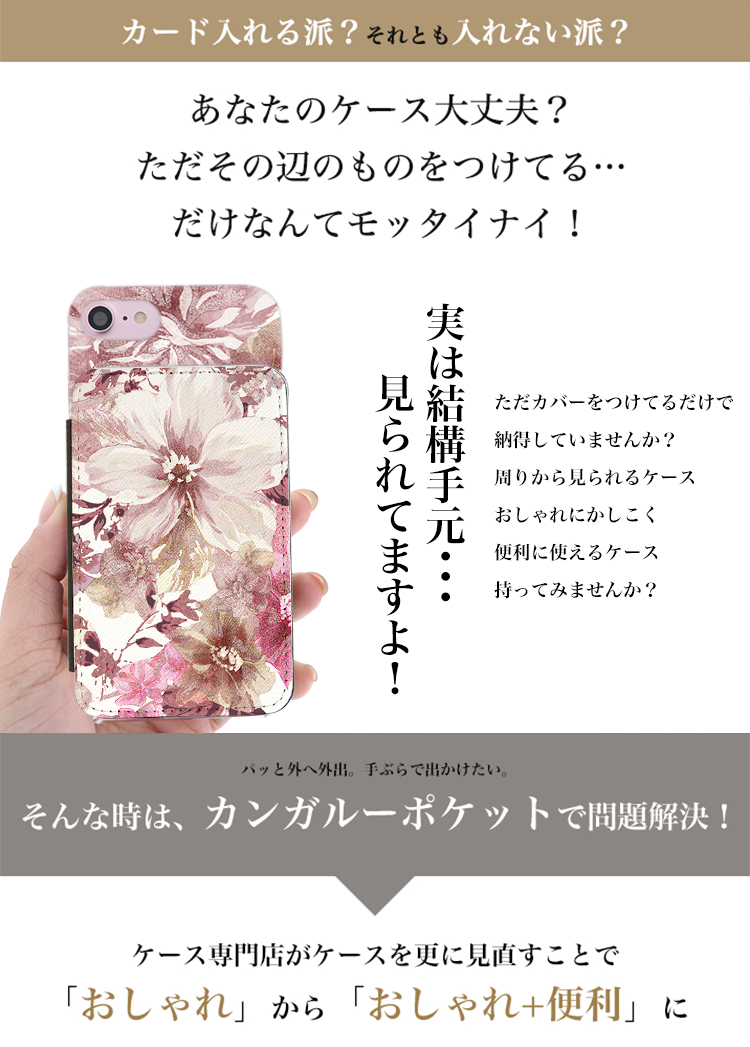 ケース カバー ジャケット iPhone7ケース iPhoneケース スマホケース スマホカバー スマートフォンケース オリジナル デコレーション デザイン かわいい 可愛い おしゃれ オシャレ 個性的 携帯ケース プレゼント 誕生日 贈りもの 彼女 彼氏 カードポケット付 人気 ディズニー カンガルーポケット カンガルー ポケット カード入れ スマホスタンド 花柄 水彩 花