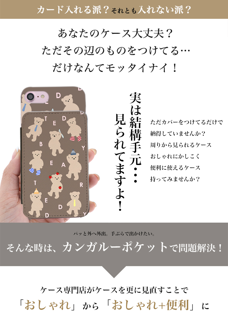 ケース カバー ジャケット iPhone7ケース iPhoneケース スマホケース スマホカバー スマートフォンケース オリジナル デコレーション デザイン かわいい 可愛い おしゃれ オシャレ 個性的 携帯ケース プレゼント 誕生日 贈りもの 彼女 彼氏 カードポケット付 人気 ディズニー カンガルーポケット カンガルー ポケット カード入れ スマホスタンド くま クマ テディベア アルファベット ホワイト グレー ブラウン 白 灰色 茶色