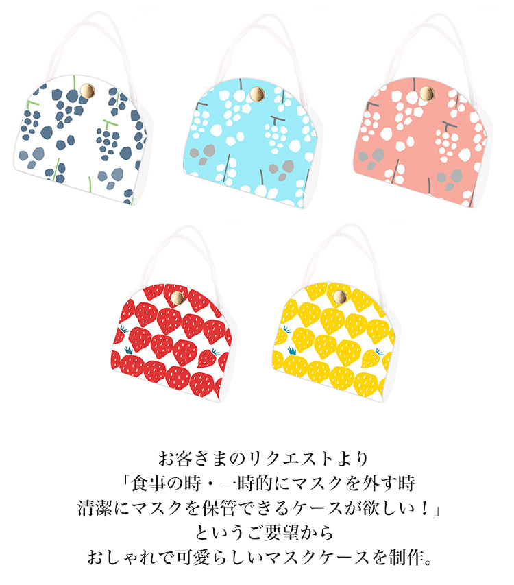 【関連ワード】 マスクケース 国産 抗菌 PUレザー 立体マスク用 持ち運び 抗菌 おしゃれ 防汚 衛生 立体マスク 布マスク 携帯用 仮置き フルーツ くだもの 果物 ぶどう グレープ いちご ストロベリー パープル スカイブルー オレンジ ピンク レッド イエロー グリーン ホワイト 紫 水色 橙色 桃色 赤 黄色 緑 白