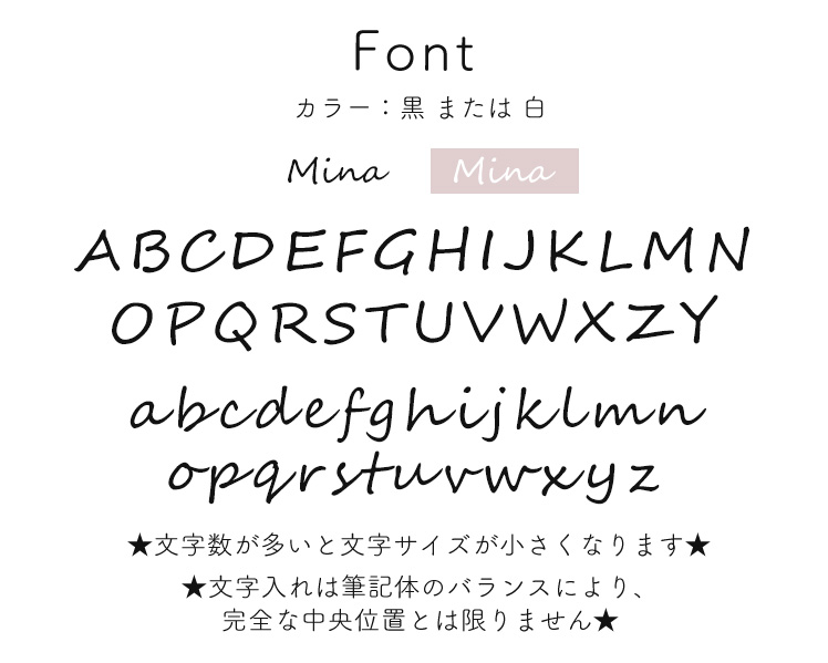 | C.ネーム×ピーチ | 黒色 | 原則 1文字目は大文字、2文字目以降は小文字 ご要望欄に入力 |