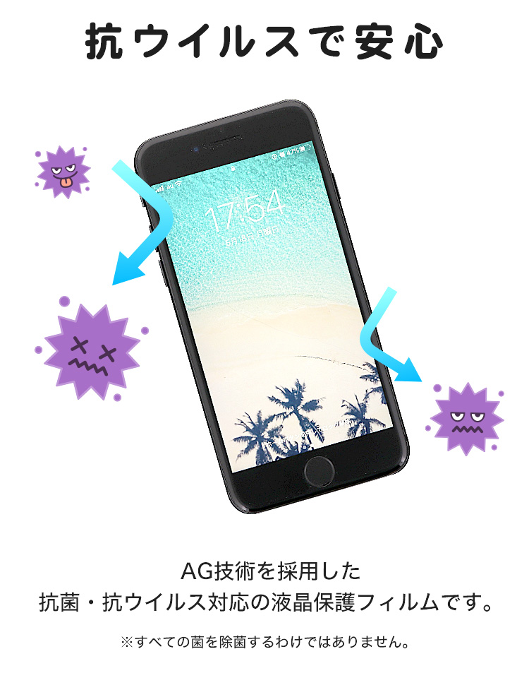 iPhone SE 第3世代 iPhone SE 第2世代(2020) iphone8 iphone7 iphone6s iphone6専用 抗菌 防菌 強化ガラスフィルム 液晶保護フィルム