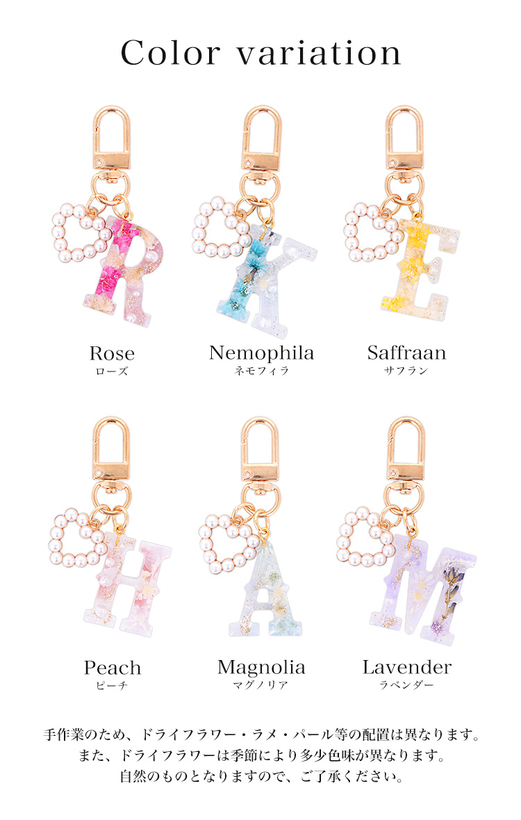【2個セット】キーホルダー 携帯ストラップ ストラップ チャーム バッグチャーム オリジナル アクセサリー スマホ スマートフォン 手帳型ケース キーリング バッグ 雑貨 おしゃれ イニシャル アルファベット 名前 花 ドライフラワー