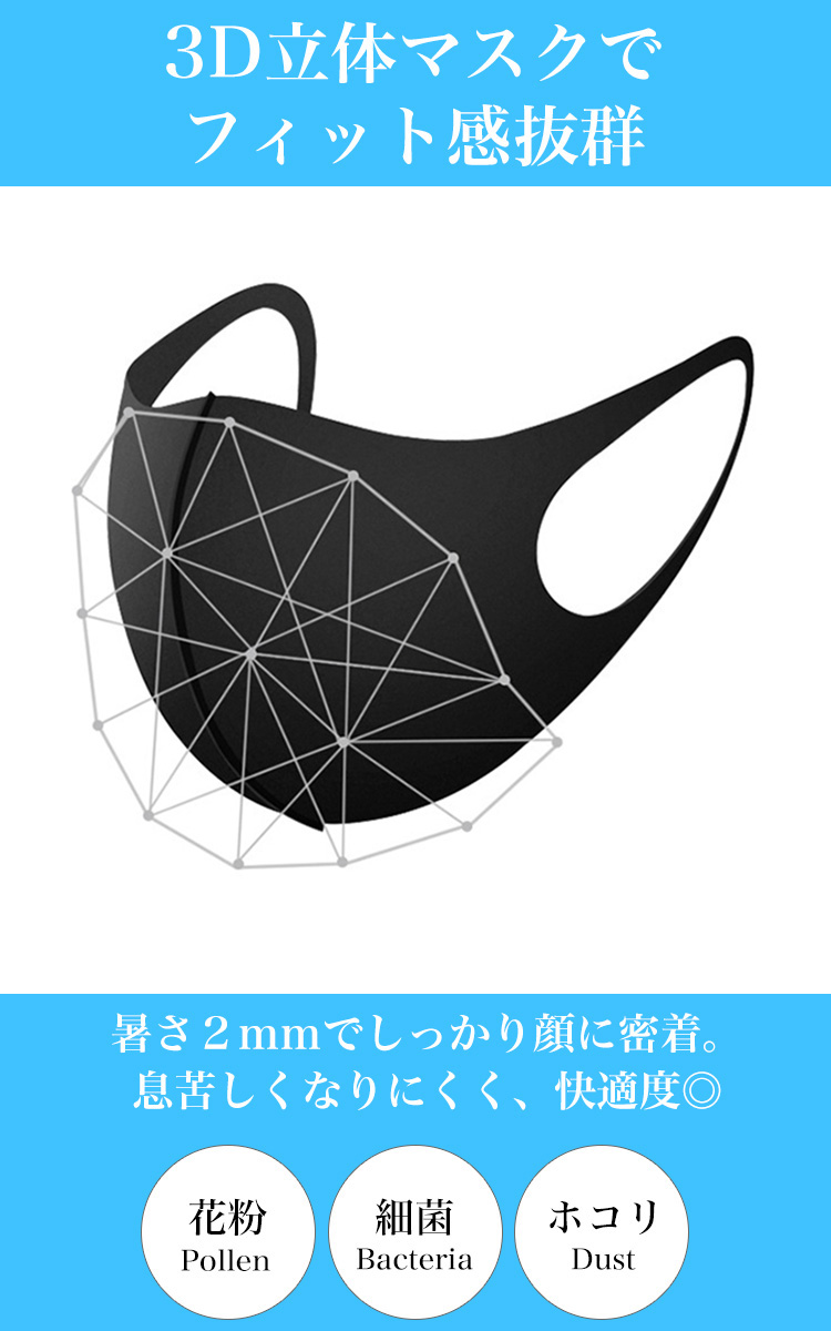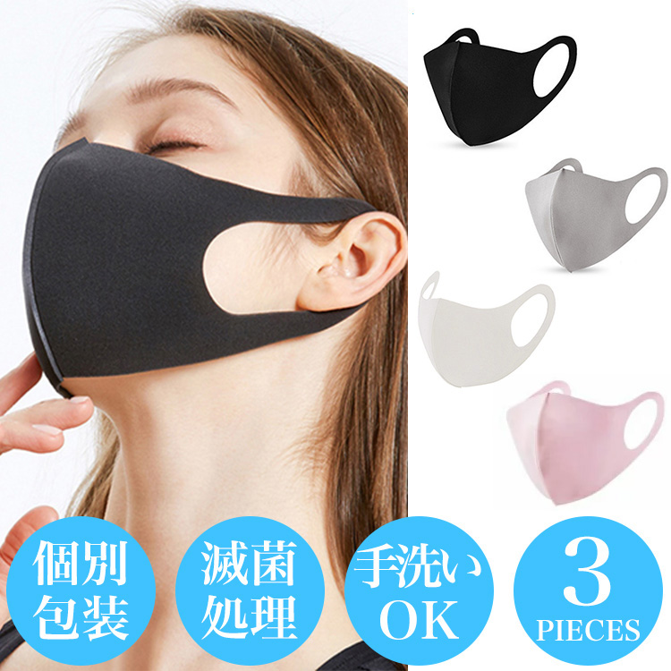 【即納】安心の国内発送 ウレタンマスク 3枚入り 安心の国内発送 滅菌処理 3D マスク 洗える 男女兼用 洗えるマスク ノロウイルス対策 花粉症対策 ウイルス対策 予防 urethanemusk